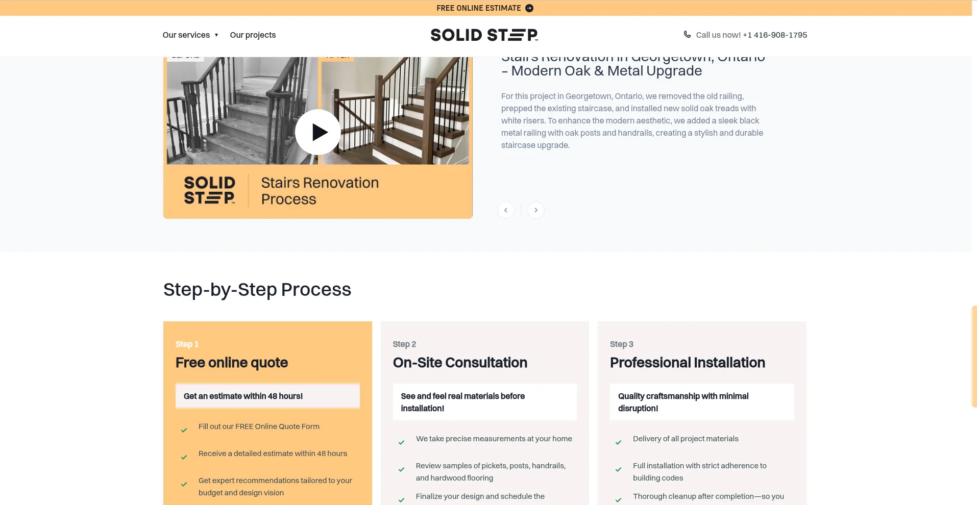Strona kanadyjskiej firmy budowlanej specjalizującej się w schodach i elementach drewnianych.