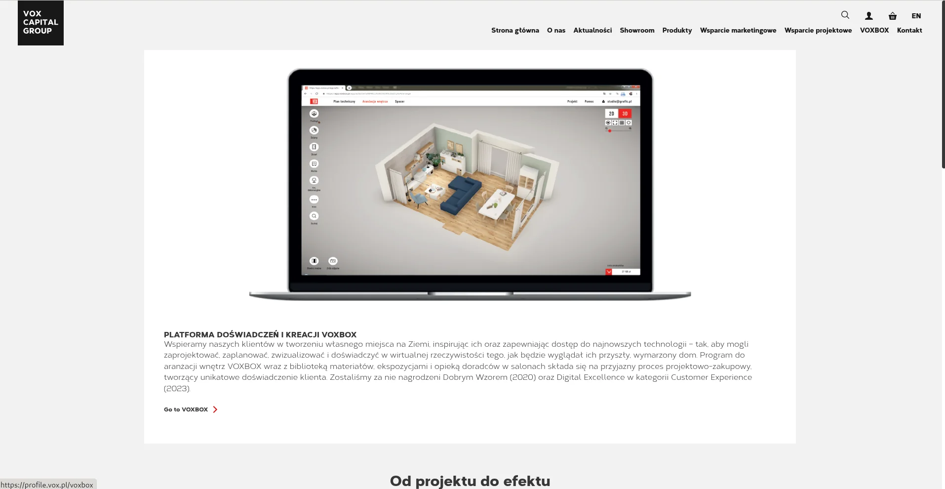 Platforma produktów wykończeniowych znanej marki VOX z konfiguratorem 3D.
